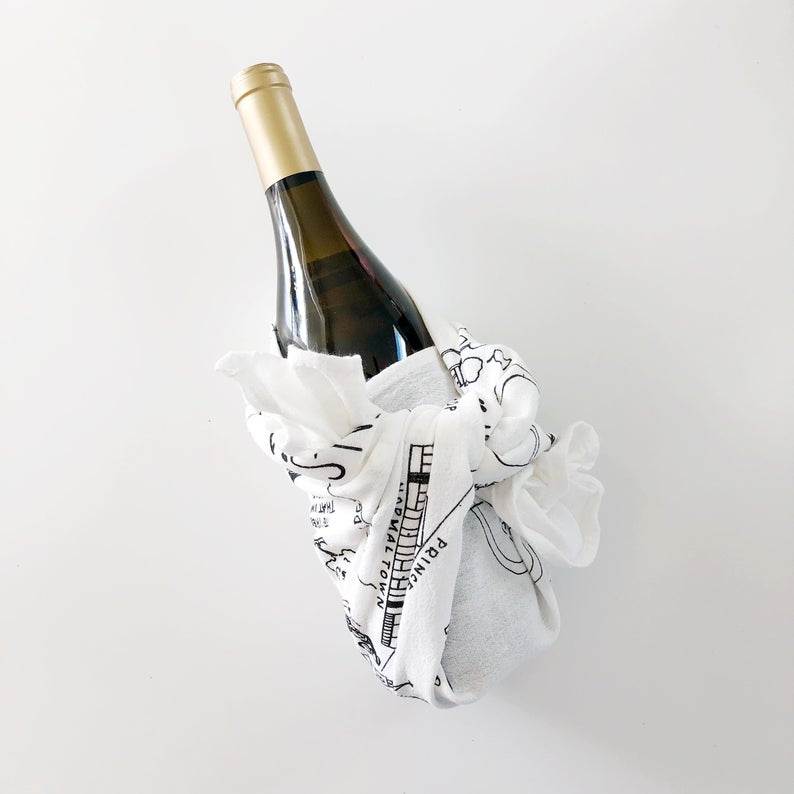 One towel wraps a bottle of wine perfectly and makes a great gift!